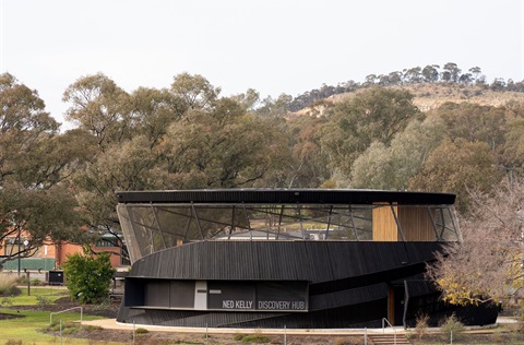 Opened in September 2023, the Ned Kelly Discovery Hub tells the dramatic story of the Glenrowan Siege—a pivotal moment in Australian history that unfolded just across the railway tracks on June 28, 1880.